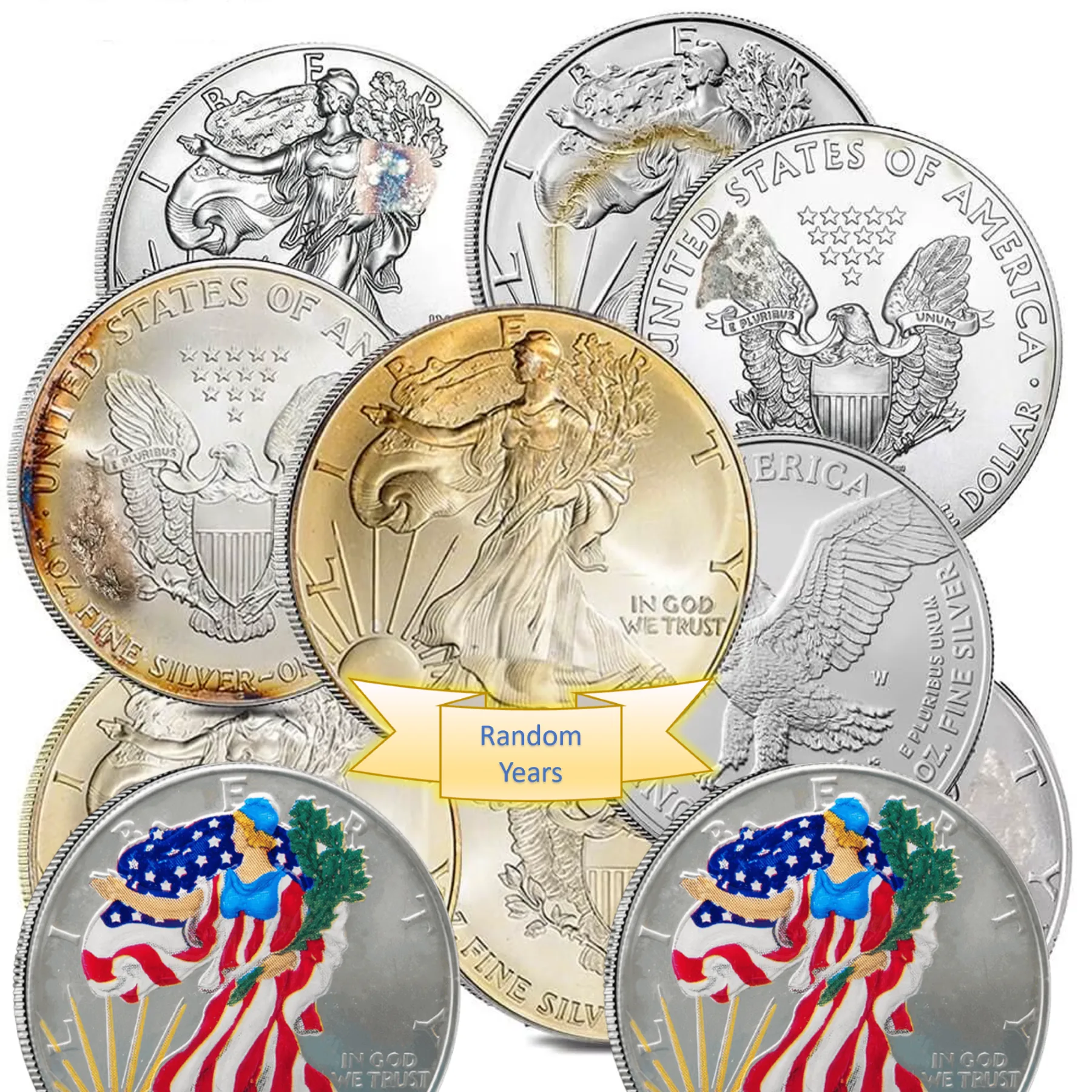 Product Specifications: 1 oz Silver Low Premium Random Style Coins Varied Condition